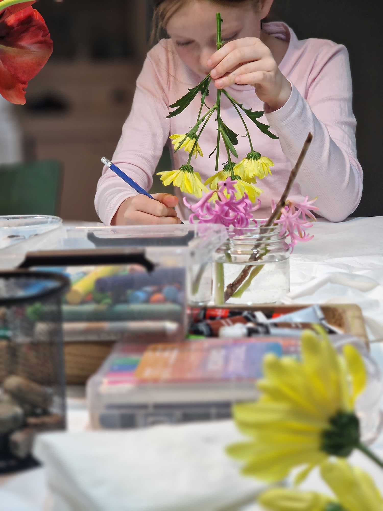 Mona van Almenkerk is een gediplomeerd kunstdocente, coach in de tekentaal en beeldend kunstenaar. Sinds 2015 geeft zij teken- en schilderles aan jeugd en volwassenen. Door haar ervaring tijdens verschillende opleidingen; opleiding Tekentaal en opleiding Vrije Academie ’t Pad, is zij bekend met zowel de klassieke schilderkunst als hedendaags schilderen en tekenen. Van 2022 t/m 2024 had zij een schitterende locatie als atelier in s’-Gravenzande waar zij les gaf en haar eigen werkplek had. Vanuit het atelier organiseerde Mona exposities voor gastkunstenaars, de kunstroute in de etalage, de kunstmarkt in ’s-Gravenzande en bijeenkomsten voor creatievelingen. Mona’s interesse gaat vaak naar het tekenen en schilderen van portretten. Zij geeft les als teken- en schilderdocente op verschillende locaties. Enkele jaren geleden heeft zij het KinderAtelier gestart voor de leeftijd van 7-12 jaar die nu op de locatie aan de Naaldwijkseweg plaatsvinden. Tijdens deze lessen krijgen de kinderen de vrijheid om hun creatief vermogen te ontwikkelen. Mona merkt vaak dat de kinderen zich kunnen ontspannen omdat zij niet hoeven te presteren, maar zelf bepalen hoe zij iets willen maken.
